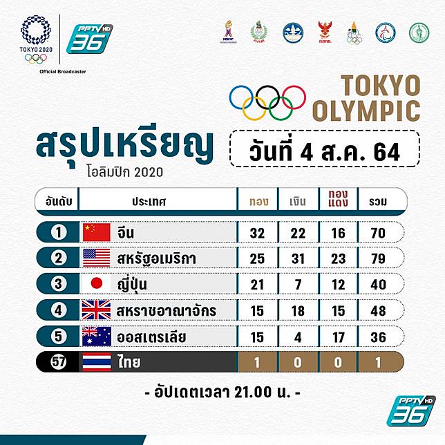 โปรแกรมกีฬาโอลิมปิก 2020 ตารางแข่งนักกีฬาไทย พร้อมช่องถ่ายทอดสด 48.4k 2 พรีเมียร์ลีก